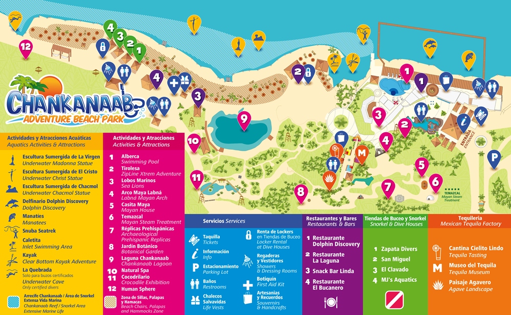 (webside) Strandklubb i nasjonalparken. Adgang er ca 170 kr for voksne, 110 kr for barn (3-11 år). Mange aktiviteter å velge mellom, fra delfinsvømming til zip-lines.